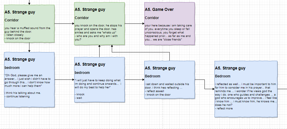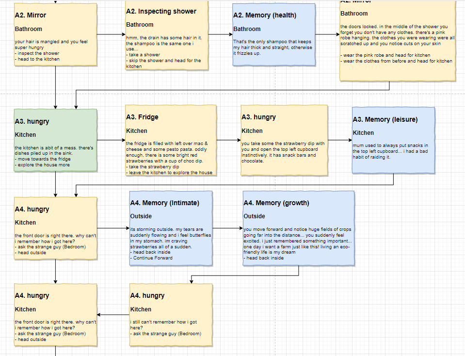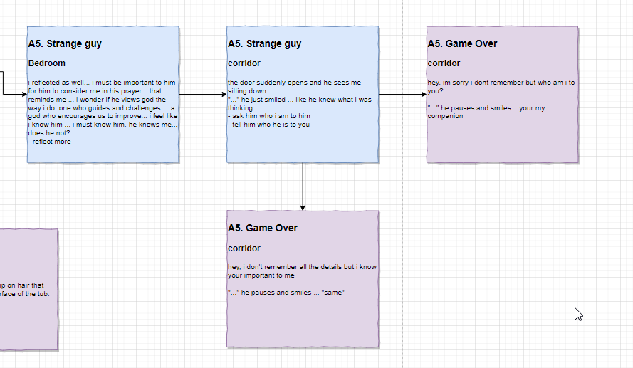 it’s probably complicated and convoluted. it’s also only the first iteration but I like the story. it’s about a girl who can’t remember how she ended up where she is. its super long so I had to take multiple screen shots but yeah… interesting idea
